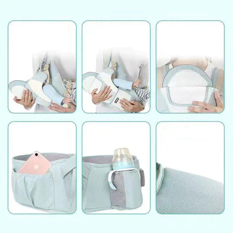 - 3 Modelos de Uso: Escolha entre o modelo de transporte único, o modelo de assento hip hop, ou o modelo combinado, adaptando-se às suas necessidades e ao conforto do seu bebê em diferentes idades.