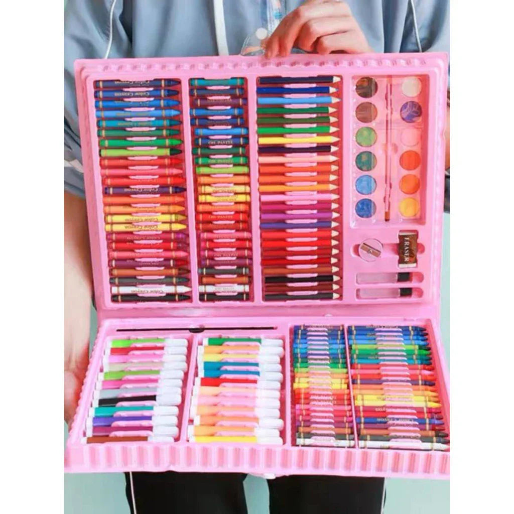 Estojo Maleta de Pintura Infantil - Kits de 24 a 150 Peças com Canetinhas, Giz, Lápis e Desenhos para Colorir